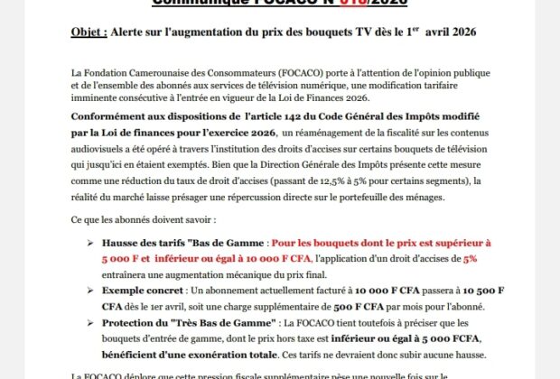 .COMMUNIQUÉ-FOCACO ALERTE SUR L’AUGMENTATION DU PRIX DES BOUQUETS DÈS LE 1er AVRIL 2026l Douala, le 26 mars 2026 La Fondation ...