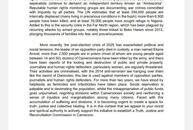 Dans une lettre déposée ce mardi 14 avril 2026 au bureau du Nonce apostolique, signée de Dr Maximilienne Ngo Mbe, ...