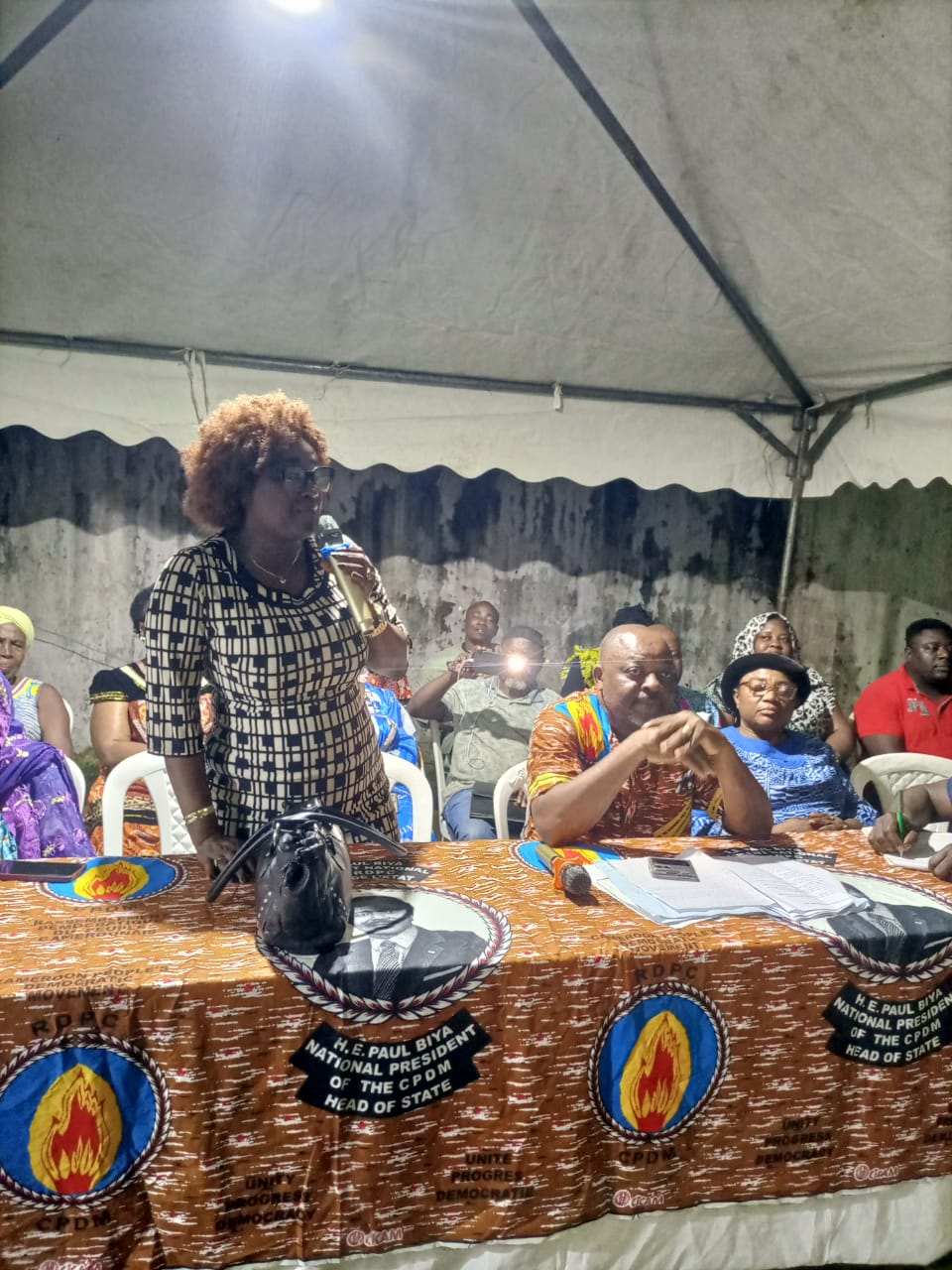Chants et applaudissements ont accompagné la chargé de Missions, Madame Simo. Avant la fin de cette réunion, des doléances des militants en particulier ceux de Bépanda Voirie ont été recueillies.