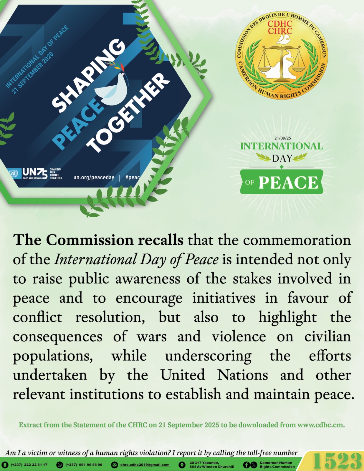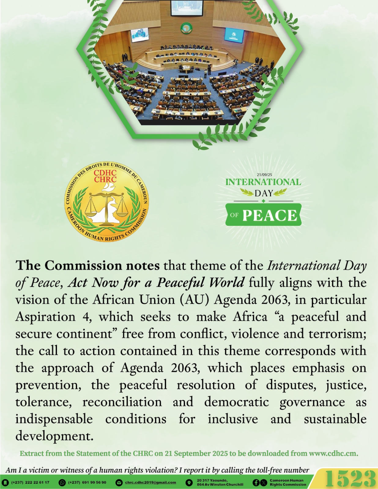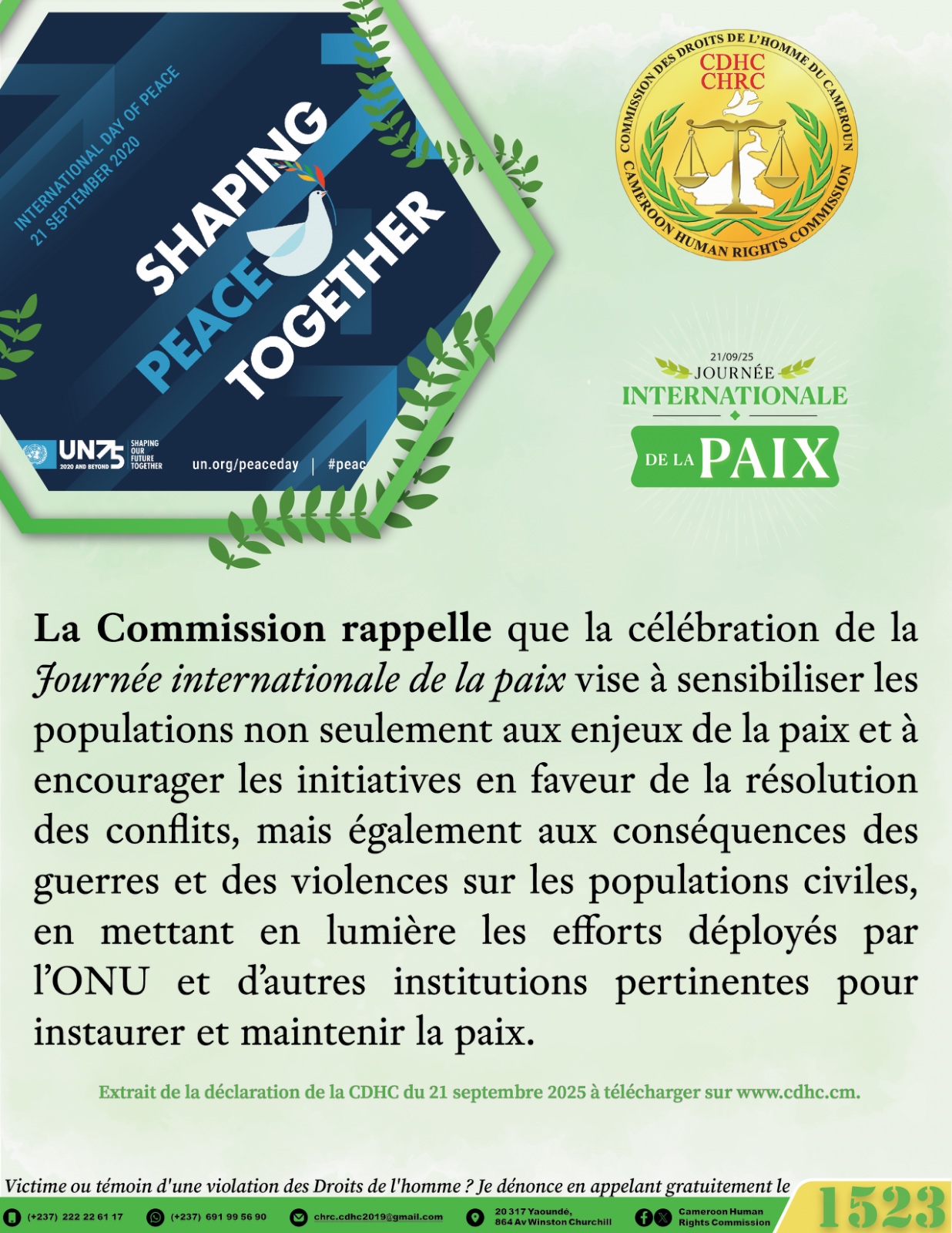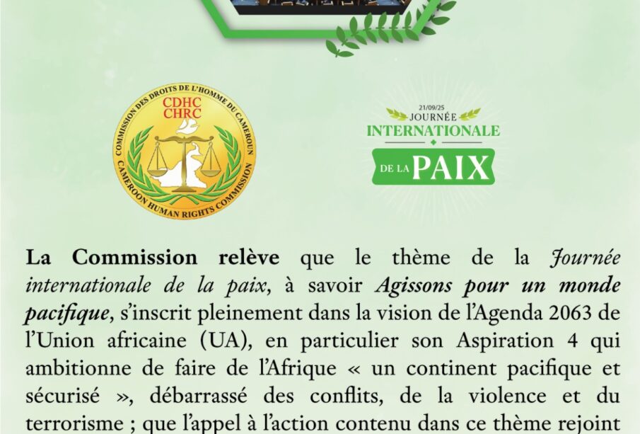 Ce 21 septembre 2025, la célébration de cette journée donne de parcourir la Déclaration de la Commission des Droits de l’Homme du Cameroun (CDHC). Constats, préoccupations et recommandations à la Une.