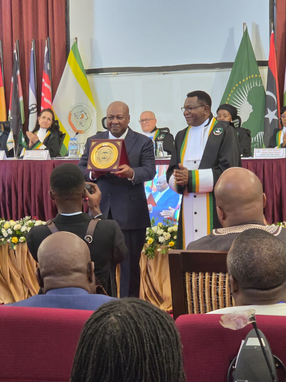 The meeting followed Professor Mouangue Kobila’s participation in the Solemn Opening Ceremony of the Court, held on 2 March 2026 at the Court’s headquarters. The ceremony marked the opening of the Judicial Year and the launch of activities celebrating the 20th anniversary of the institution. His Excellency John Mahama, President of the Republic of Ghana and guest of honour, was in attendance.